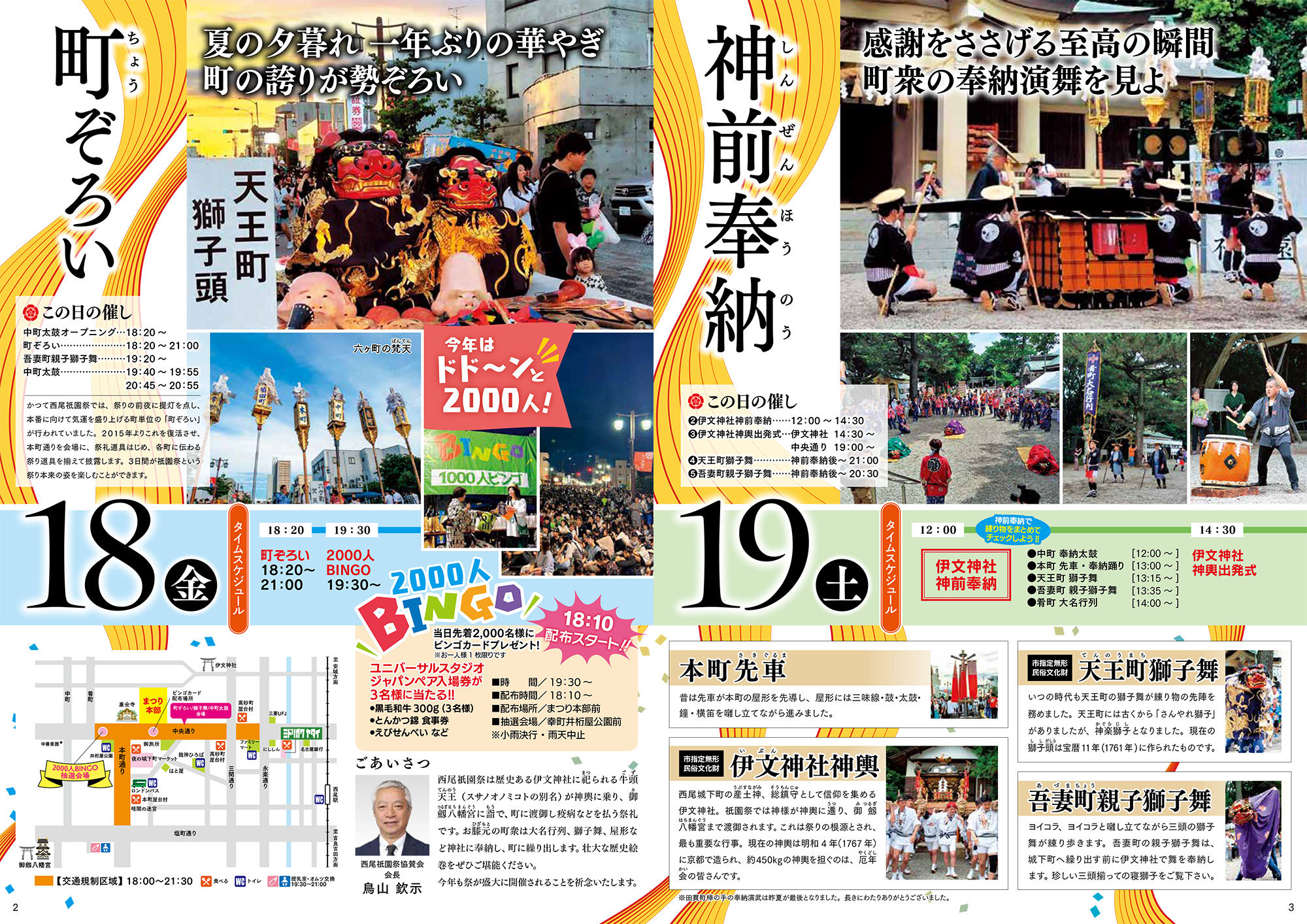 2023年の情報に更新しました。祭り当日はパンフレット・うちわを本部で配布しておりますのでお立ち寄りください。